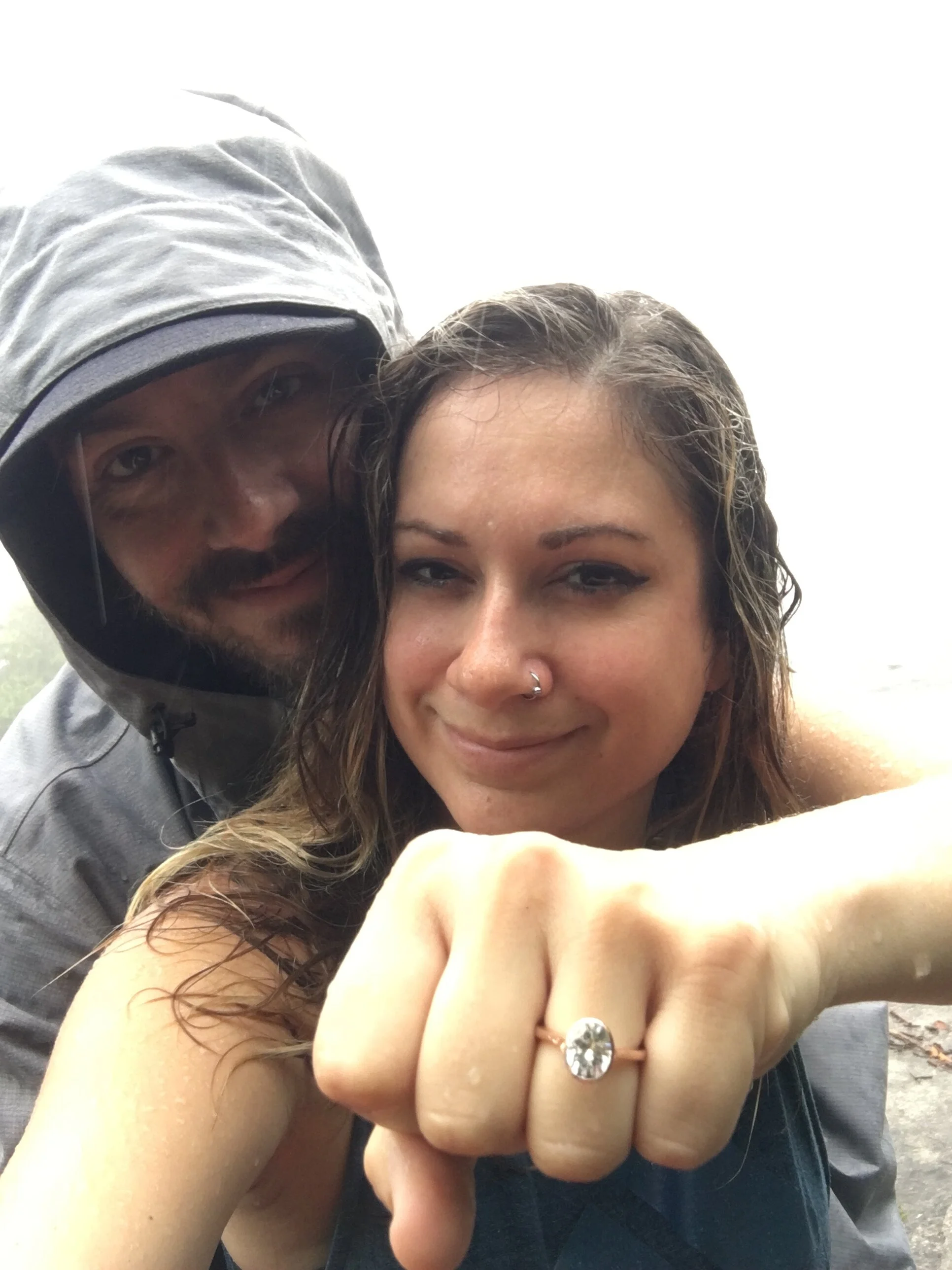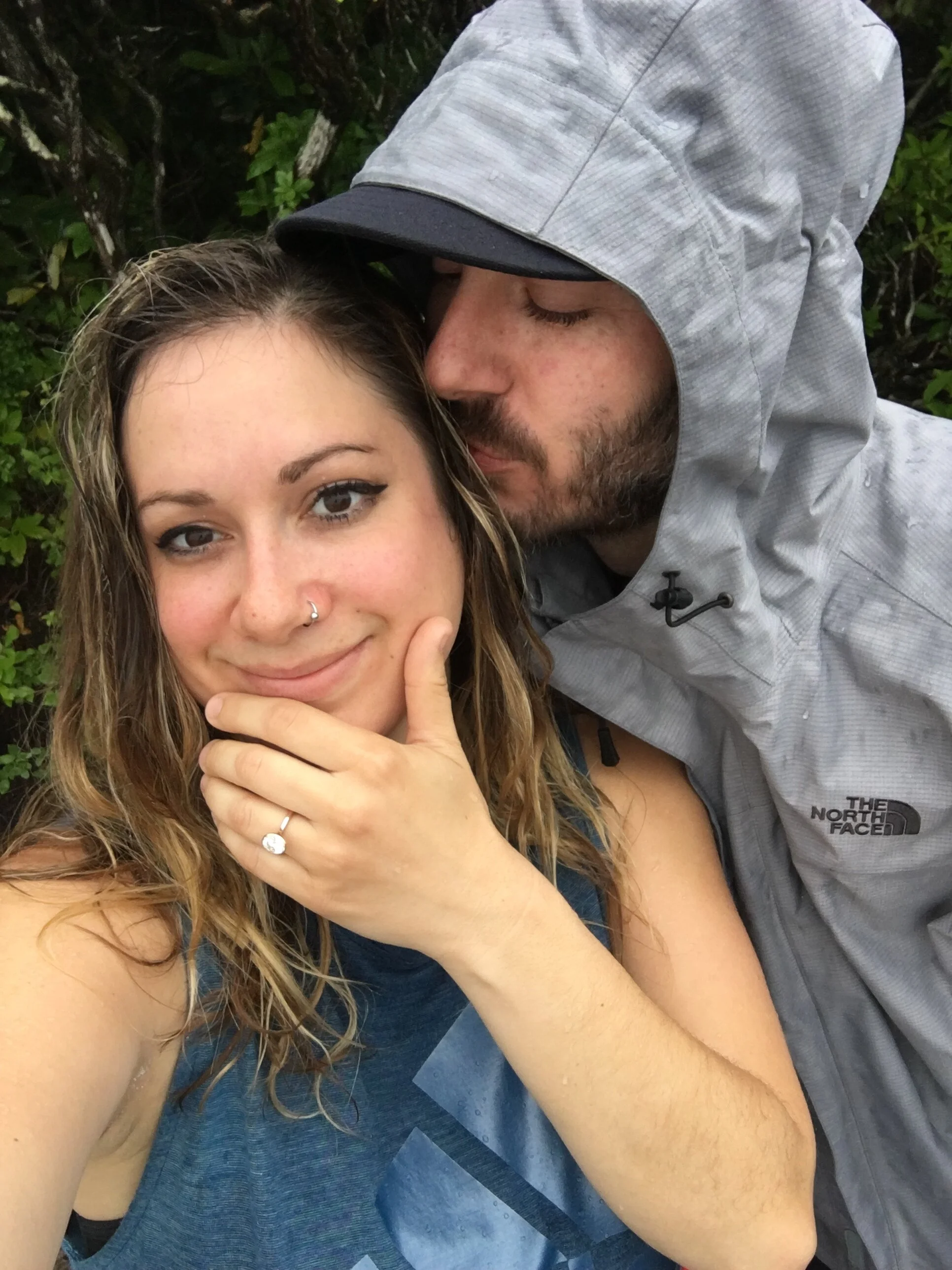 We got in engaged on top of Looking Glass Rock in Western NC in June 2019. It was pouring and there was not a soul around to take our picture, but it was still magical.